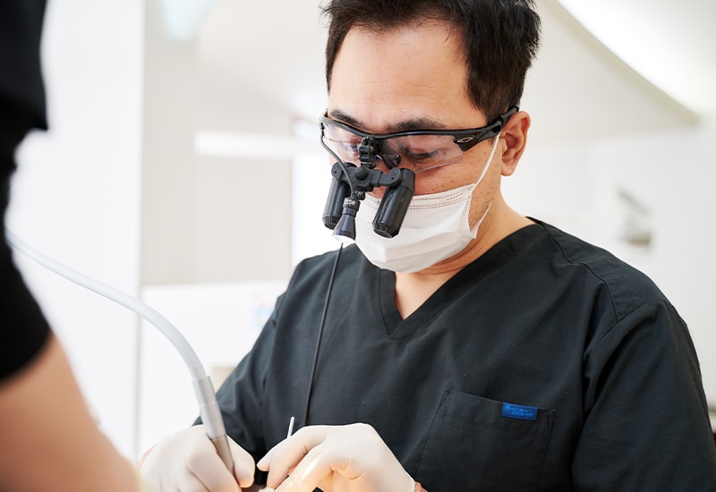 院長による拡大鏡検査で見つけにくい虫歯をチェックします。