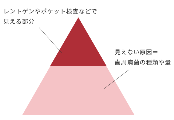 レントゲンや歯周ポケット検査などの一般的な検査では、今の状況を画像や数値で見えますが、そうなった原因まではわかりません。