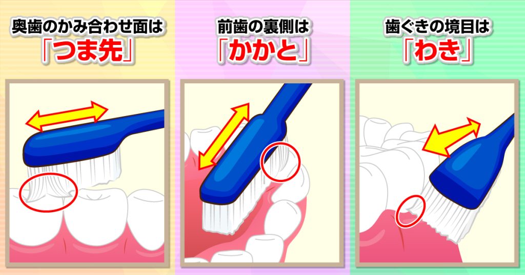 磨き残しを減らす!歯ブラシの「つま先・かかと・わき」
