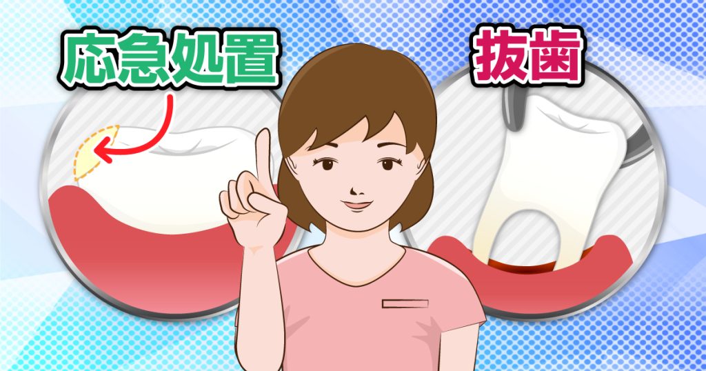 むし歯があれば応急処置を施し、ぐらつく歯があれば抜歯や歯の固定も行います。